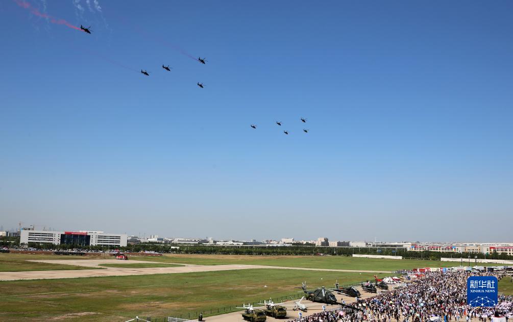 9月14日,在第六屆中國天津國際直升機博覽會(huì )開(kāi)幕式上,陸軍“風(fēng)雷”飛行表演隊進(jìn)行通場(chǎng)飛行表演。