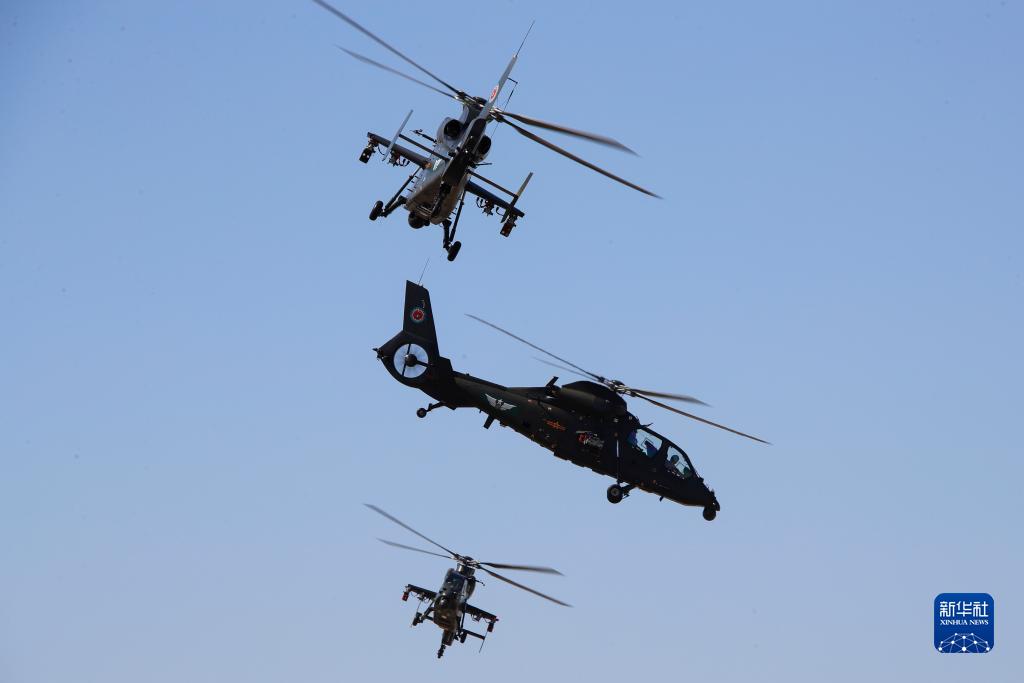 9月14日,在第六屆中國天津國際直升機博覽會(huì )開(kāi)幕式上,陸軍“風(fēng)雷”飛行表演隊直-19武裝直升機進(jìn)行飛行表演。