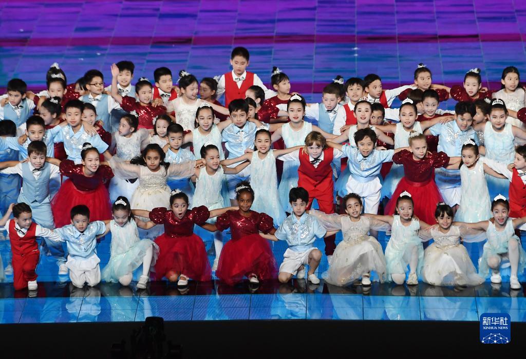 9月14日,中外小朋友在北京文化論壇文藝晚會(huì )上表演。