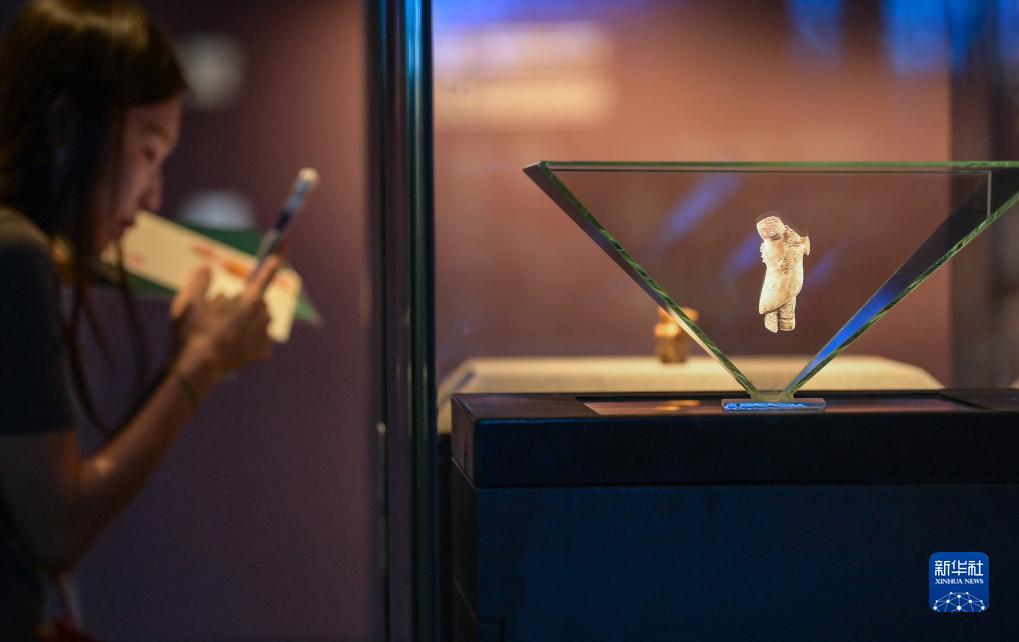 9月15日在中國考古博物館拍攝的一件使用了全息技術(shù)展示的展品。