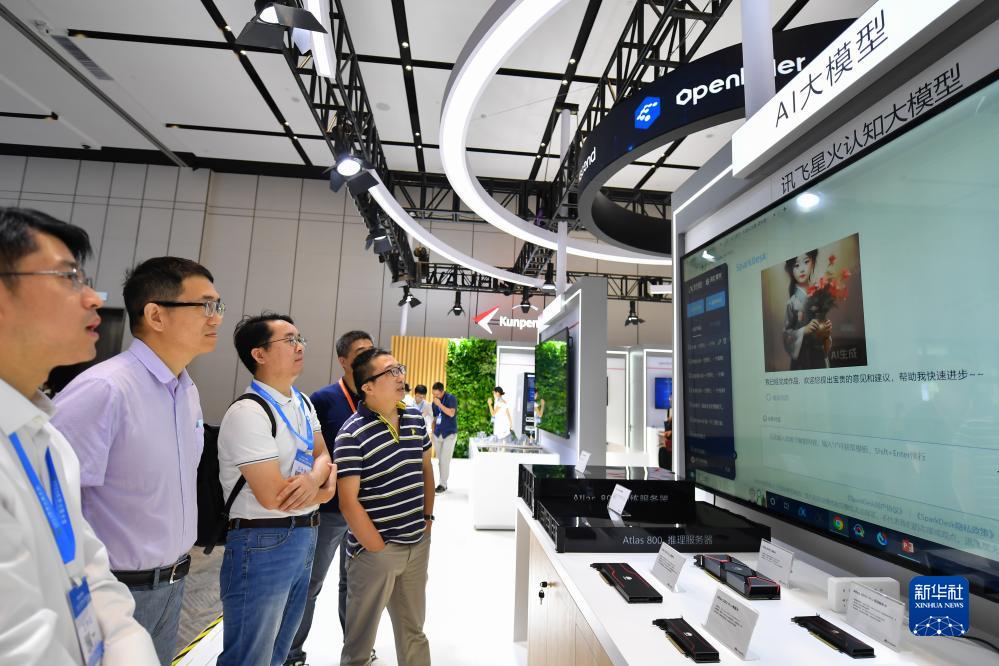 9月15日,參觀(guān)者在2023世界計算大會(huì )專(zhuān)題展上了解AI大模型。