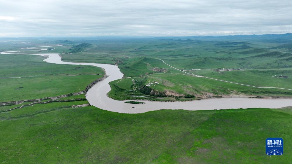 黃河流經(jīng)甘南藏族自治州瑪曲縣境內(7月6日攝,無(wú)人機照片)。
