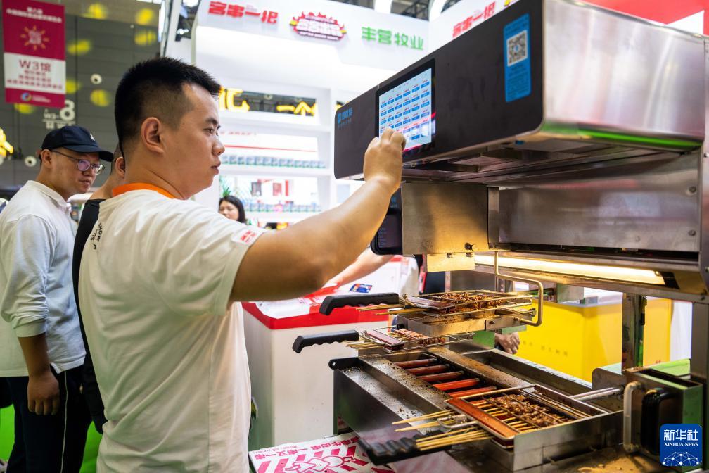 9月15日,在長(cháng)沙國際會(huì )展中心,參展商在展示自動(dòng)燒烤機操作方法。