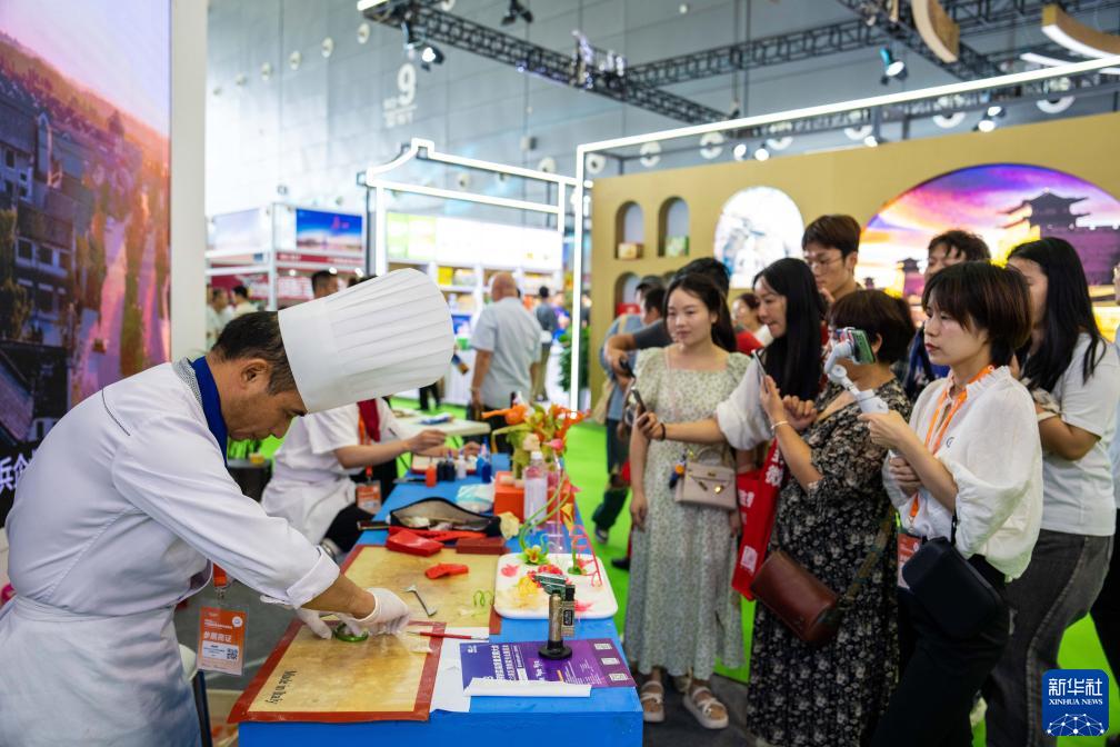 9月15日,在長(cháng)沙國際會(huì )展中心,參展商在展示廚藝。