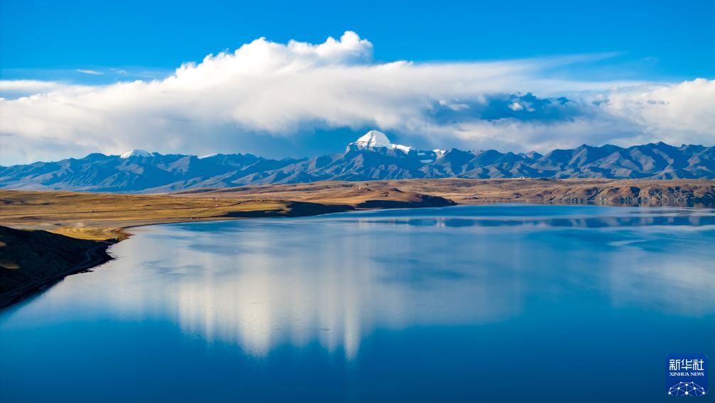 普蘭縣境內的瑪旁雍錯,遠處雪山為岡仁波齊(無(wú)人機照片,9月13日攝)。