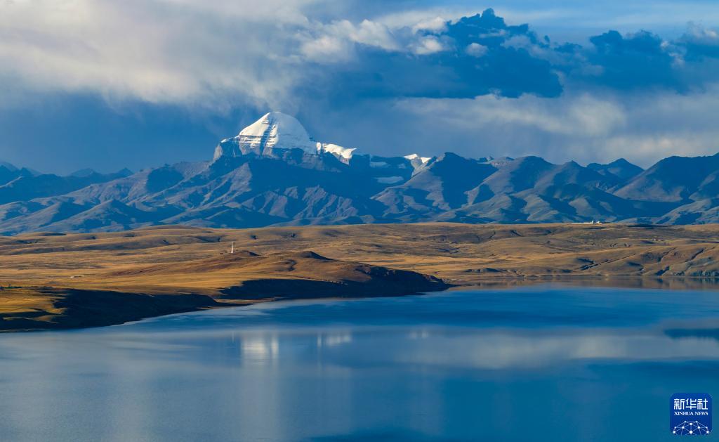 普蘭縣境內的瑪旁雍錯和岡仁波齊(無(wú)人機照片,9月13日攝)。