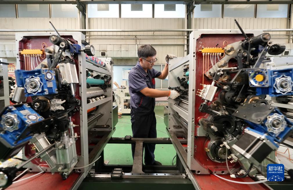9月15日,位于玉田縣的河北萬(wàn)杰機械科技股份有限公司工人在組裝印刷機械。