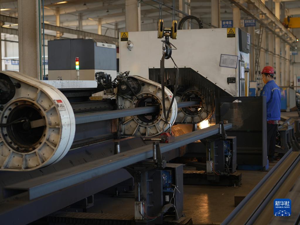 9月15日,工作人員在河北科源智能電氣有限公司生產(chǎn)車(chē)間操控設備對型材進(jìn)行激光切割。