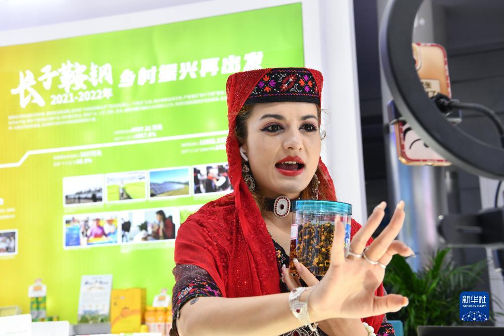 9月15日,在慈展會(huì )現場(chǎng),一名主播正為助農產(chǎn)品直播帶貨。