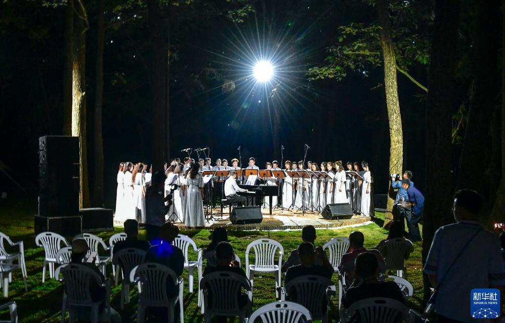 9月14日,游客在興義市萬(wàn)峰林街道的“鄉愁集市”觀(guān)賞森林音樂(lè )會(huì )。