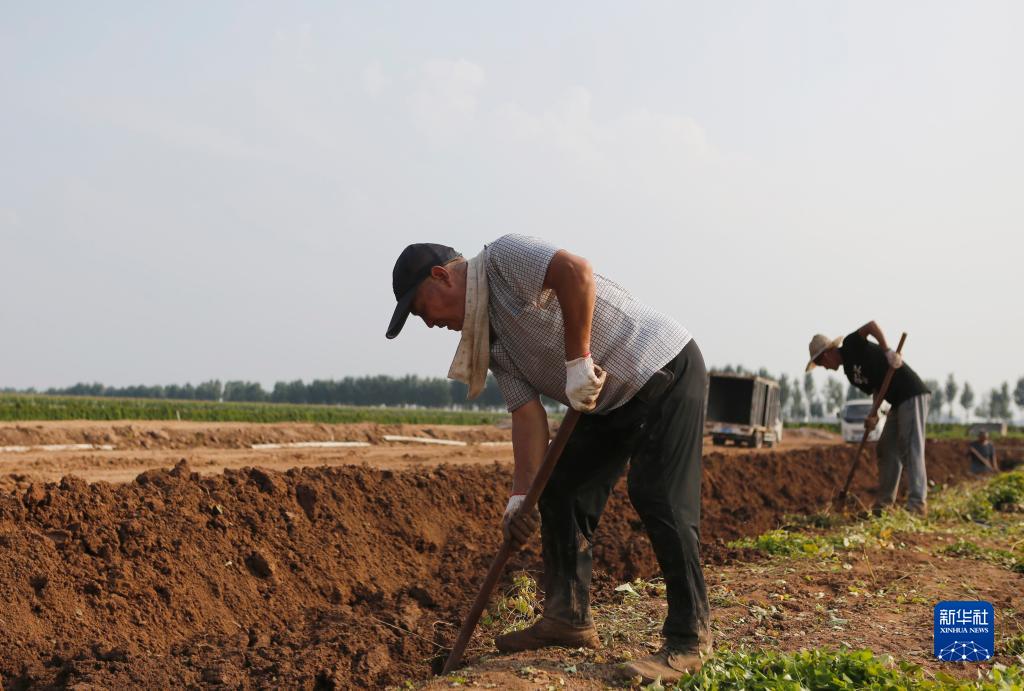 9月15日,河南省焦作市溫縣黃莊鎮米莊村農民在田間收獲鐵棍山藥。