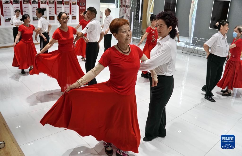 北京市朝陽(yáng)區八里莊街道朝陽(yáng)無(wú)限社區的居民在社區新時(shí)代文明實(shí)踐所排練舞蹈(9月14日攝)。