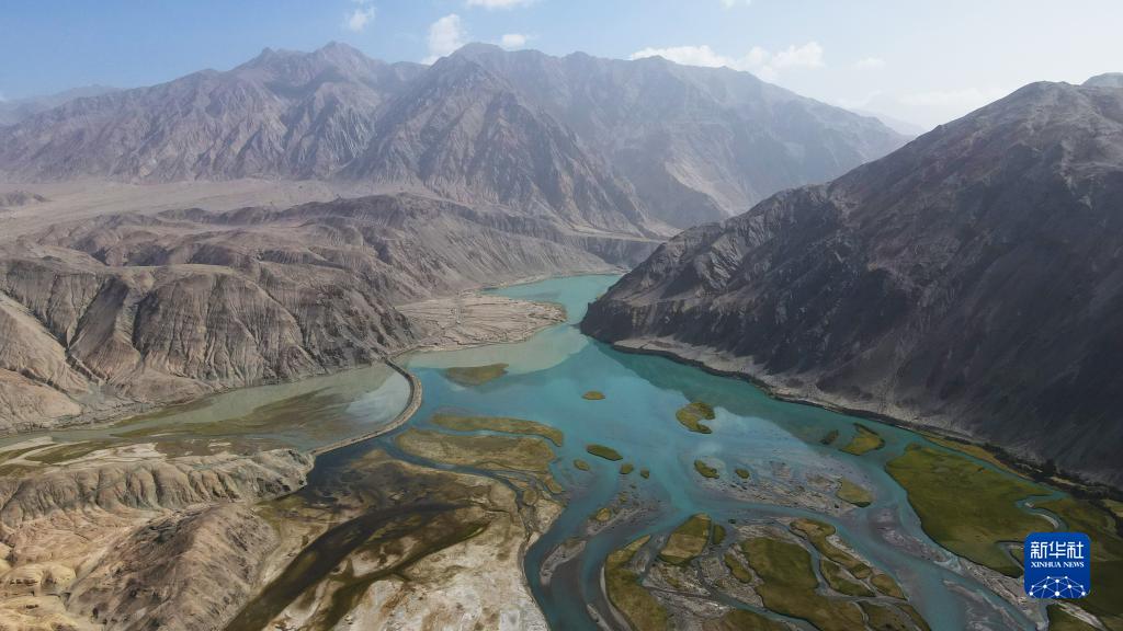 新疆塔什庫爾干塔吉克自治縣高原濕地景觀(guān)(9月5日攝,無(wú)人機照片)。