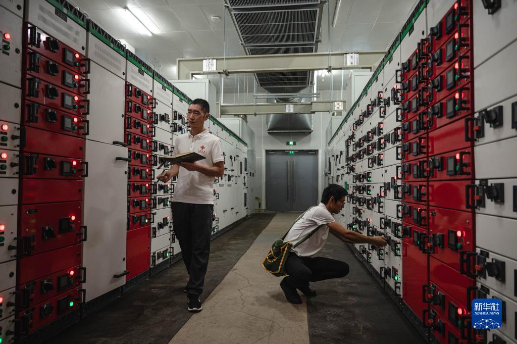 9月11日,中方技術(shù)服務(wù)組成員在埃塞俄比亞首都亞的斯亞貝巴非洲疾控中心總部大樓內進(jìn)行電路檢修。