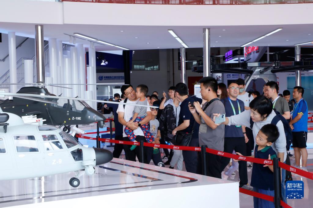 9月16日,觀(guān)眾在直升機模型前駐足觀(guān)看。