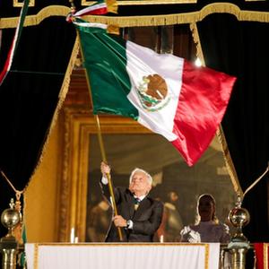 9月15日,在墨西哥首都墨西哥城的國家宮,墨西哥總統洛佩斯在慶祝墨西哥獨立213周年活動(dòng)上揮舞國旗。