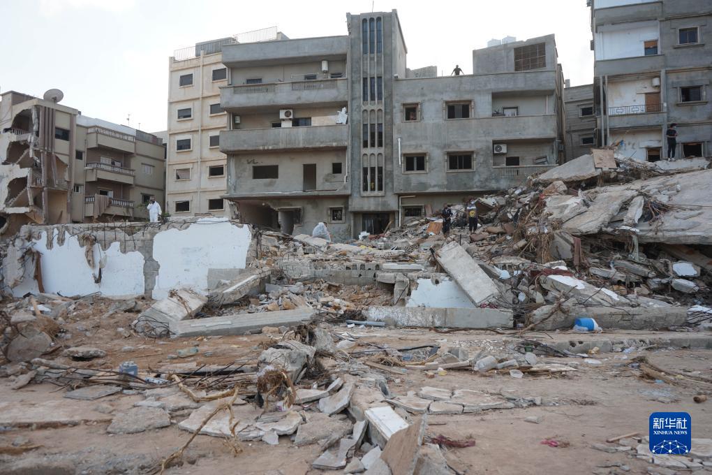 這是9月16日在利比亞德?tīng)柤{拍攝的受損的建筑。