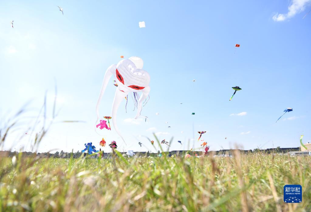 當日,德國柏林舉行2023年巨型風(fēng)箏節?,F場(chǎng)放飛了章魚(yú)、青蛙、金魚(yú)、小熊等造型的巨型風(fēng)箏,還吸引眾多市民前來(lái)放風(fēng)箏。