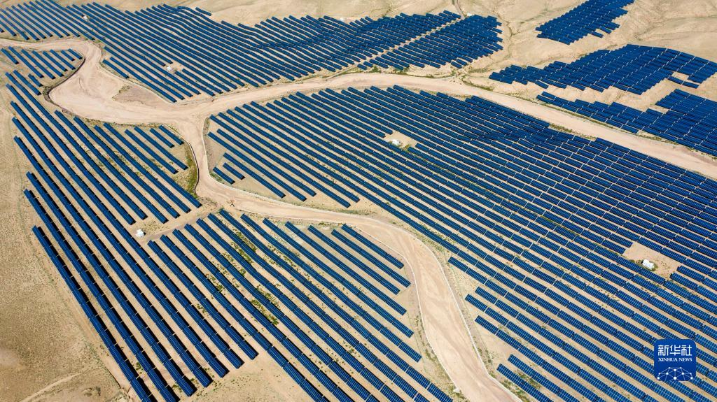 這是9月16日拍攝的位于寧夏吳忠市同心縣河西鎮的光伏電站(無(wú)人機照片)。