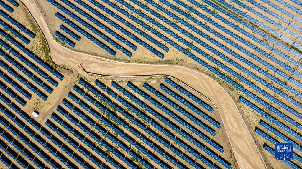 這是9月16日拍攝的位于寧夏吳忠市同心縣河西鎮的光伏電站(無(wú)人機照片)。