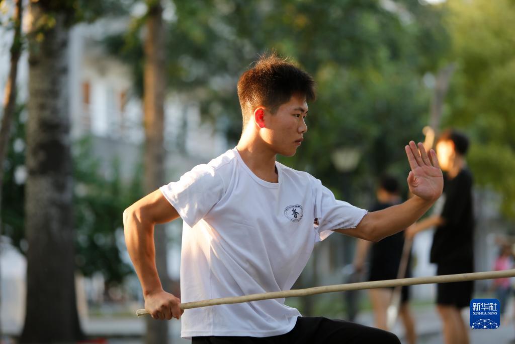 9月14日,河南溫縣陳家溝一家武術(shù)學(xué)校的學(xué)員在戶(hù)外練功。