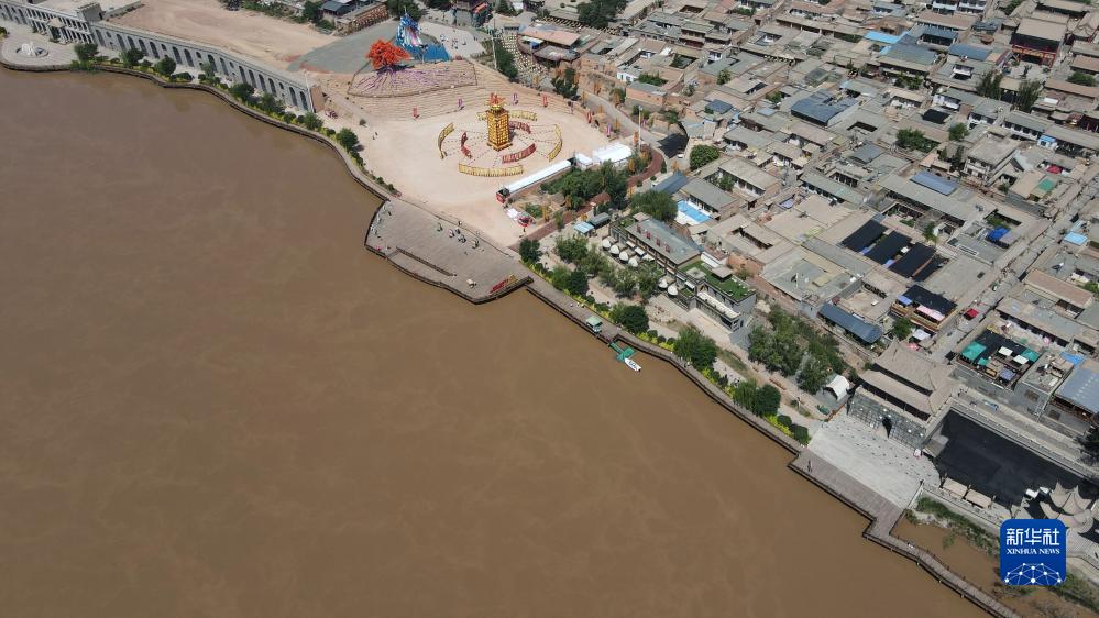 這是位于甘肅省蘭州市西固區黃河北岸的河口古鎮。河口古鎮歷史悠久、文化底蘊深厚,現留存商賈碼頭、戰略要塞、交通樞紐等遺跡(7月9日攝,無(wú)人機照片)。