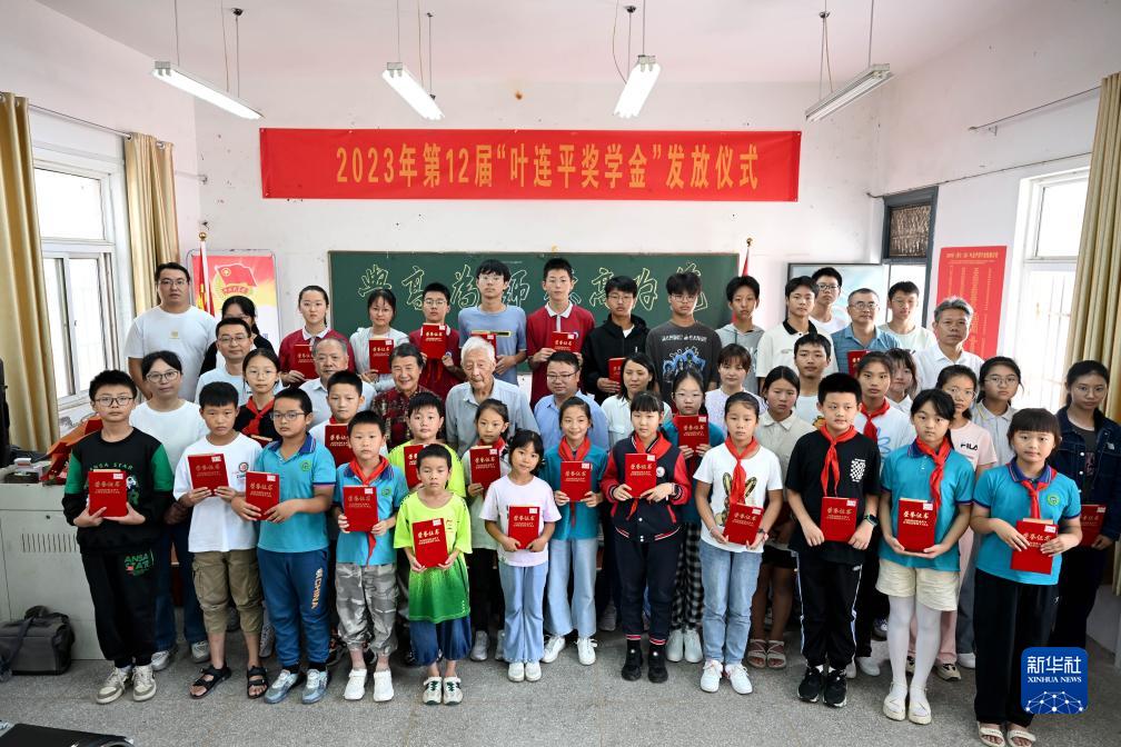 9月17日,第十二屆“葉連平獎學(xué)金”發(fā)放儀式在安徽省馬鞍山市和縣卜陳學(xué)校舉行,共計為37名中小學(xué)生發(fā)放46600元獎學(xué)金。今年96歲的葉連平是卜陳學(xué)校的退休教師,2000年,他在自己家里開(kāi)辦了“留守未成年人之家”,利用周末和寒暑假為農村學(xué)生免費補習英語(yǔ)。2012年,葉連平同烏江鎮政府、卜陳學(xué)校三方籌款6萬(wàn)元,成立了和縣烏江愛(ài)心助教協(xié)會(huì )暨葉連平獎學(xué)金,12年來(lái)為300多名農村孩子累計發(fā)放獎學(xué)金37萬(wàn)余元。