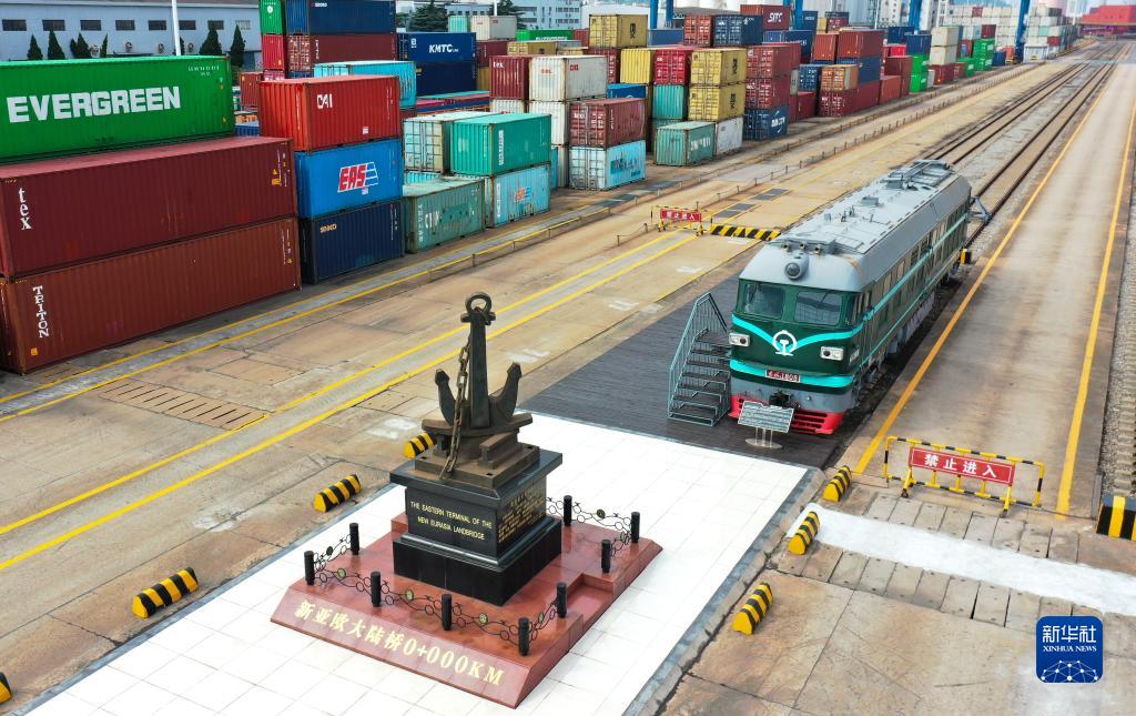 9月16日拍攝的新亞歐大陸橋東端起點(diǎn)標志(無(wú)人機照片)。