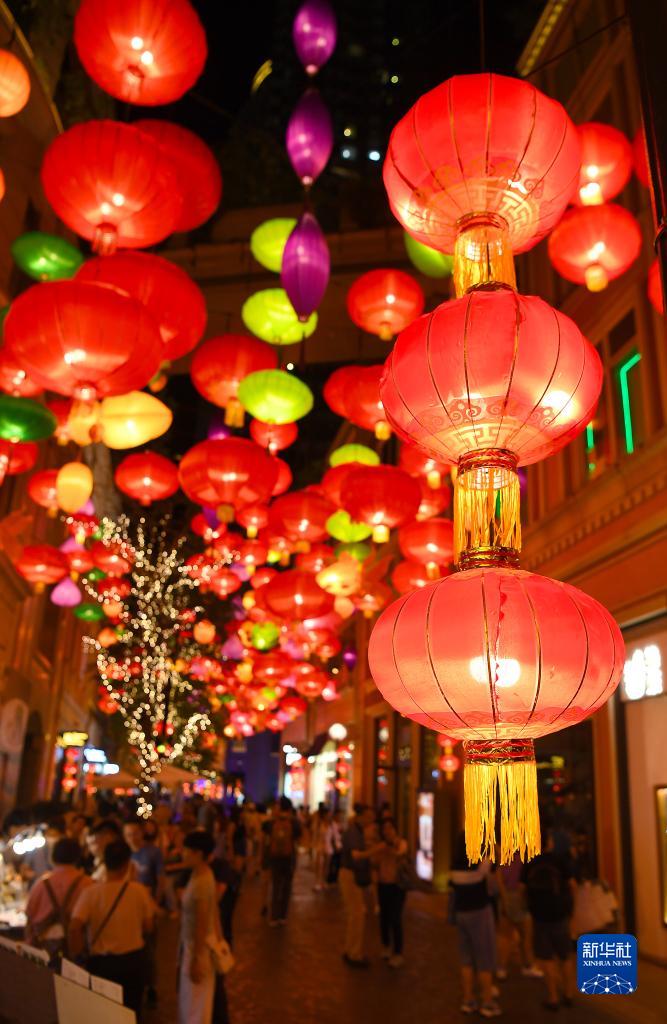 9月17日,人們在利東街觀(guān)賞彩燈。