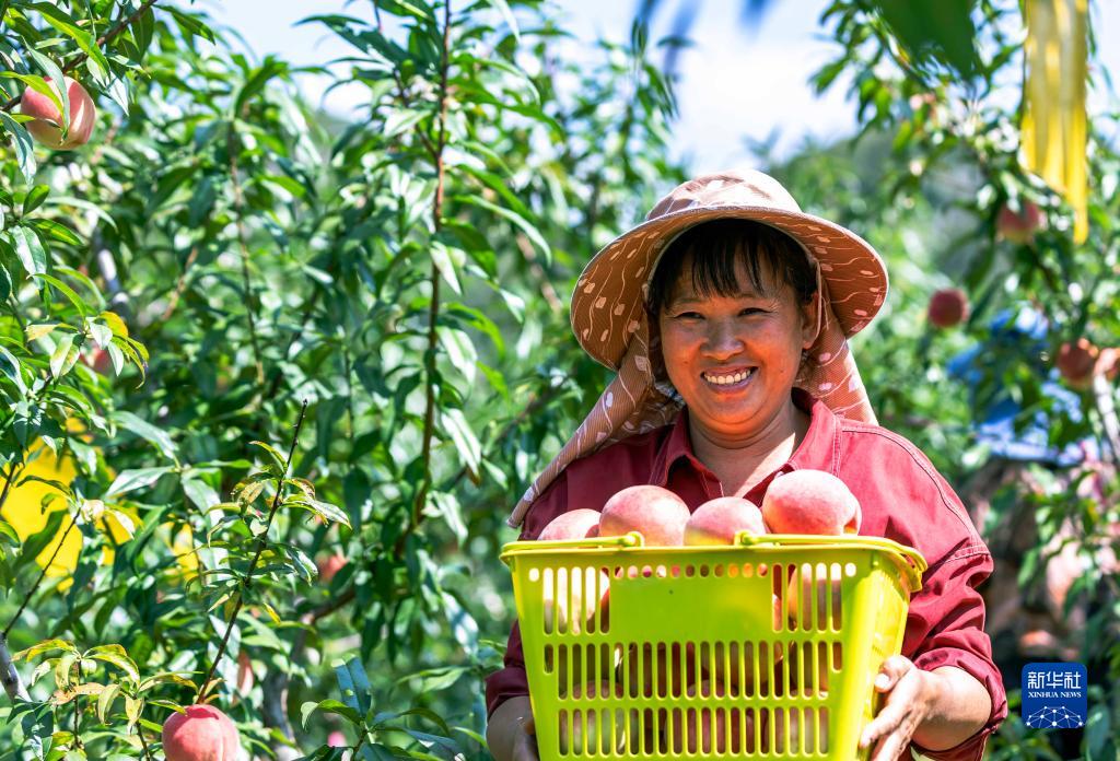 9月17日,村民在貴州省六盤(pán)水市鐘山區保華鎮阿勒河村冬桃種植基地采摘鮮桃。