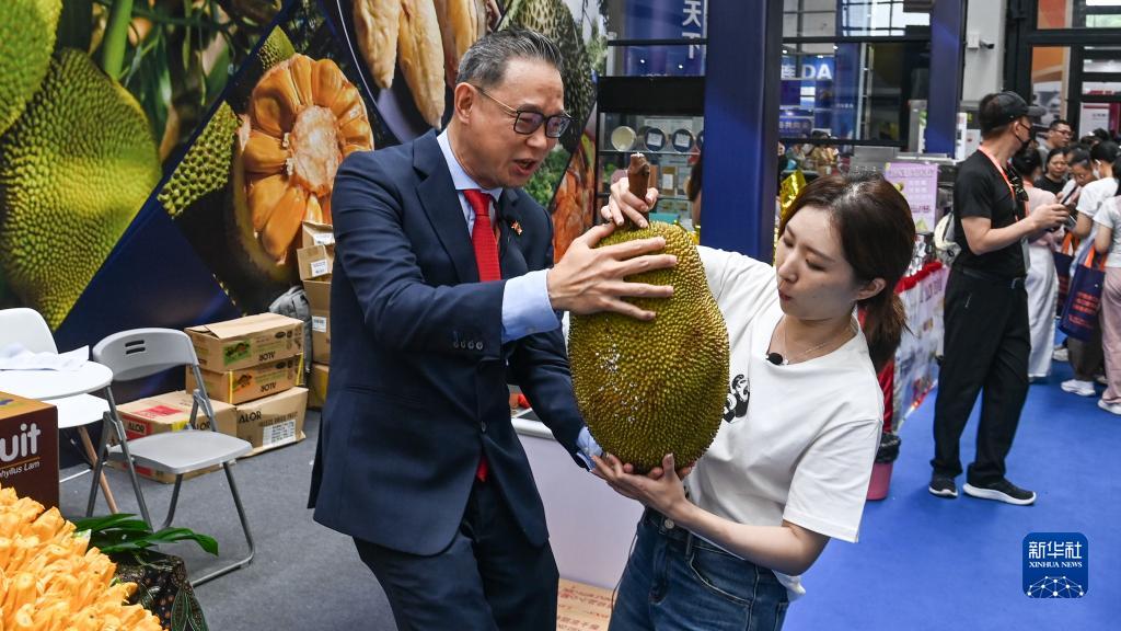 9月18日,在南寧國際會(huì )展中心,觀(guān)眾在選購菠蘿蜜。