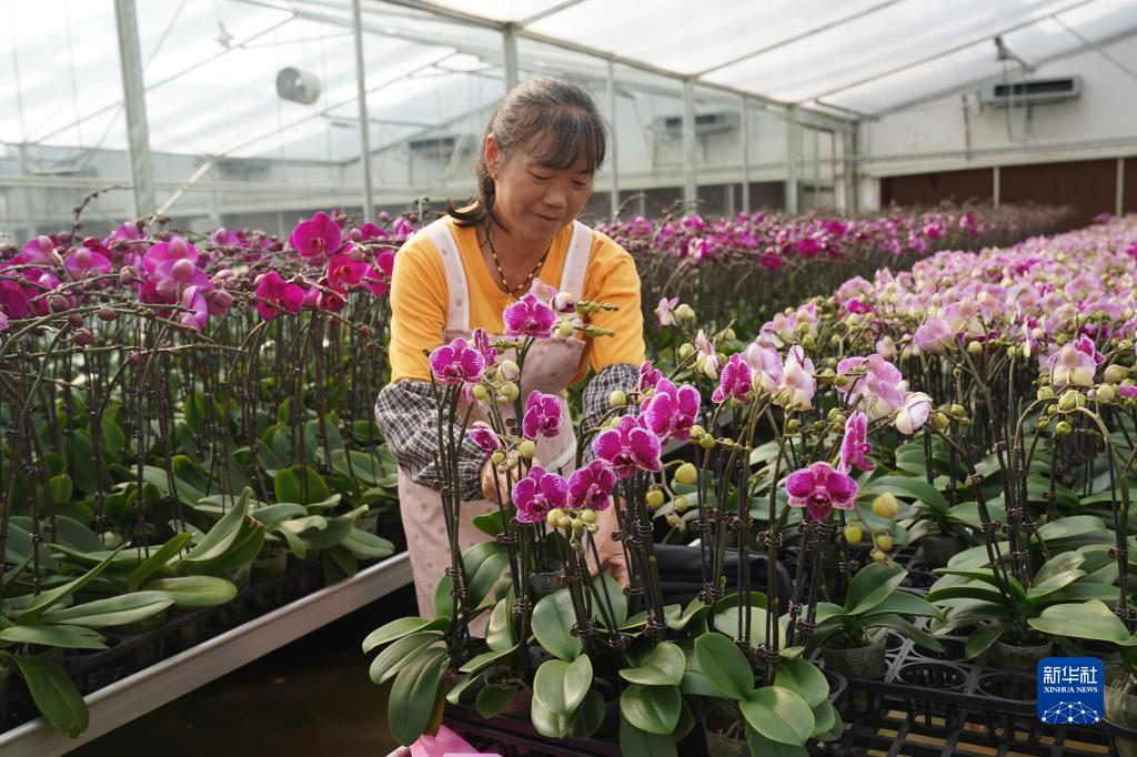 9月18日,農戶(hù)在大棚內挑選蝴蝶蘭。