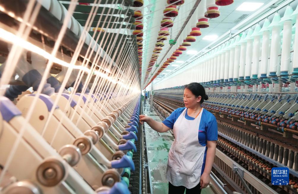 9月19日,工人在晉州市一家紡織企業(yè)的生產(chǎn)車(chē)間工作。