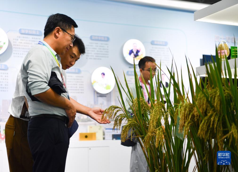 9月19日,觀(guān)眾在楊凌農高會(huì )參觀(guān)農作物樣品。