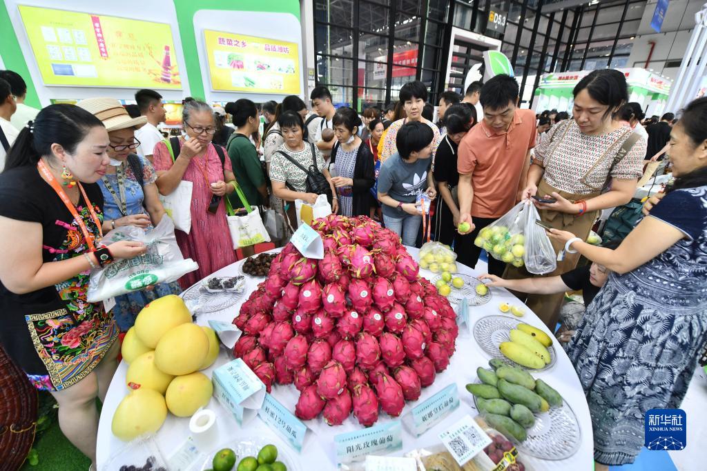 9月19日,觀(guān)眾在東博會(huì )現場(chǎng)選購水果。