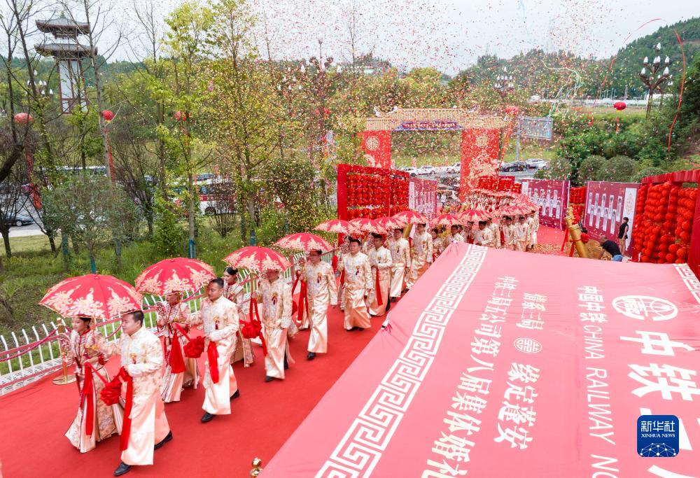 當日,在成達萬(wàn)(成都經(jīng)達州至萬(wàn)州)高速鐵路四川省蓬安縣燕山寨隧道口的施工工地,來(lái)自中鐵三局五公司各建設工地的38對新人,身著(zhù)中國傳統婚禮服飾參加集體婚禮。