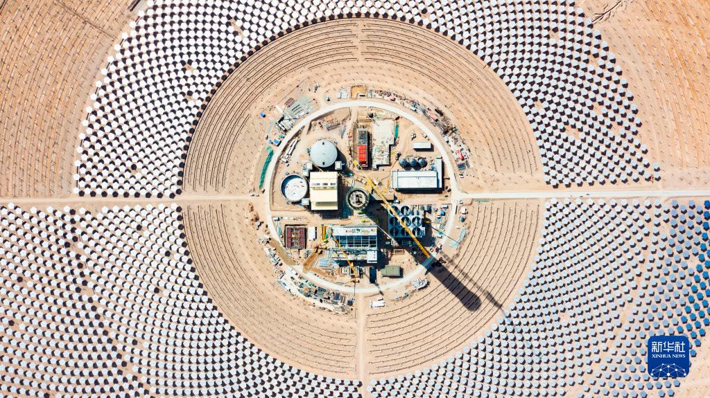 這是試點(diǎn)項目吸熱塔及鏡場(chǎng)區(9月19日攝,無(wú)人機照片)。