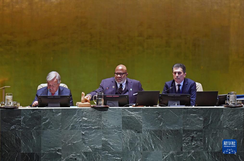 9月19日,在位于紐約的聯(lián)合國總部,第78屆聯(lián)大主席弗朗西斯(中)宣布聯(lián)合國大會(huì )一般性辯論開(kāi)幕。