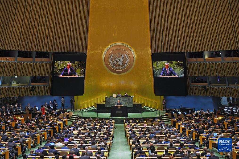 9月19日,在位于紐約的聯(lián)合國總部,聯(lián)合國秘書(shū)長(cháng)古特雷斯在第78屆聯(lián)合國大會(huì )一般性辯論開(kāi)幕式上講話(huà)。