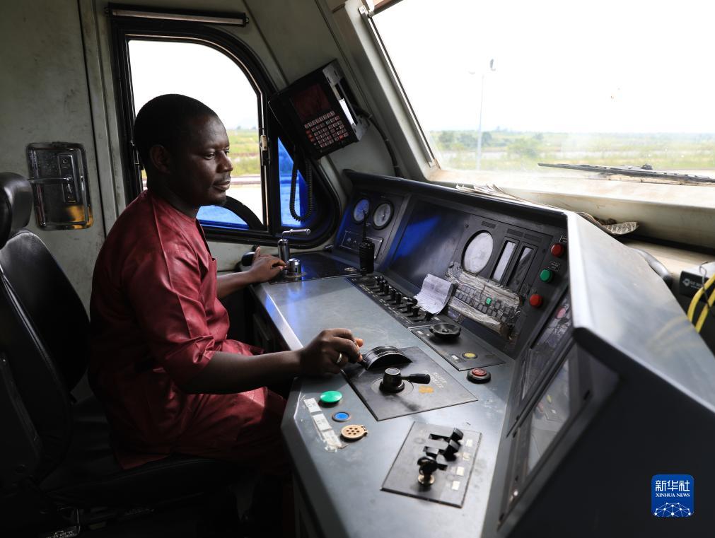 9月18日,在尼日利亞首都阿布賈的阿卡鐵路起點(diǎn)站伊都火車(chē)站,司機為發(fā)車(chē)做準備。