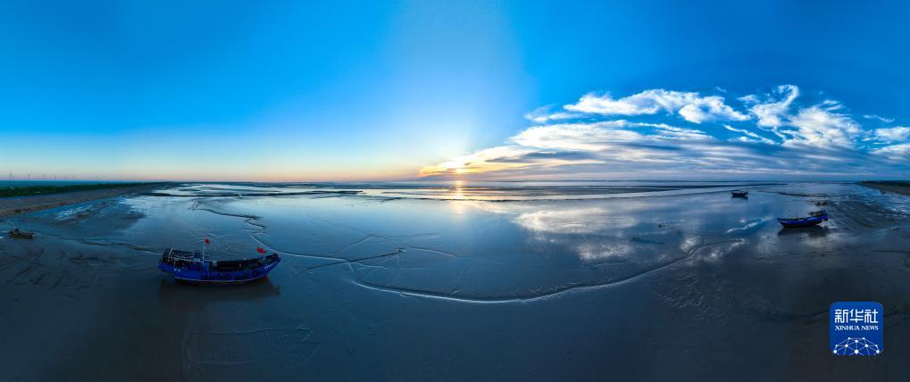 鹽城東臺條子泥濕地日出時(shí)分景色(9月1日攝,無(wú)人機照片)。