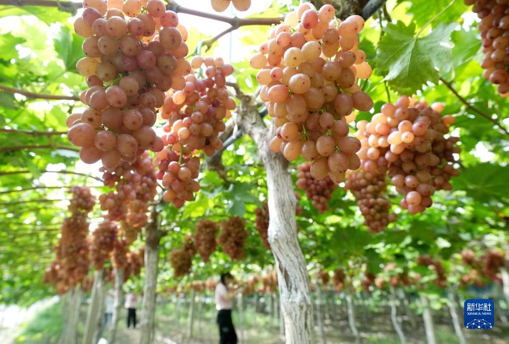 9月20日,河北省晉州市馬于鎮北辛莊村一家葡萄種植合作社的社員在采收成熟的葡萄。