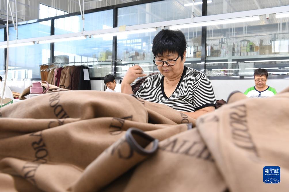9月20日,在位于南宮市的河北鴻熙服裝股份有限公司,工人在縫制服裝。