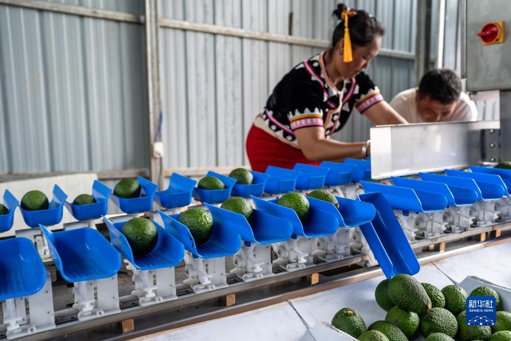 9月20日,孟連縣娜允鎮南雅村牛油果種植基地的農戶(hù)在分揀牛油果。
