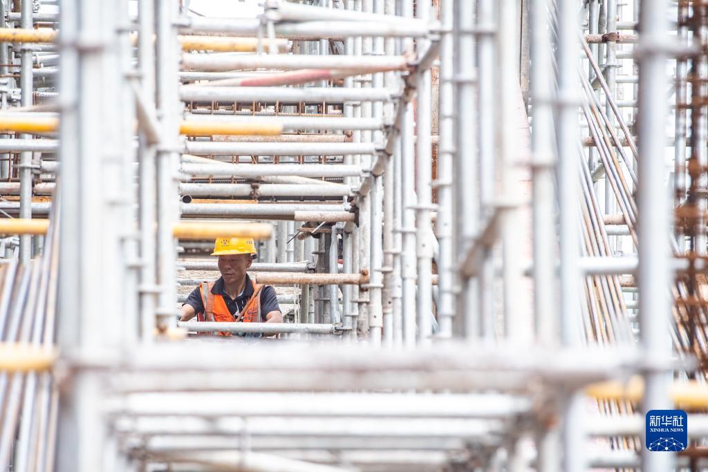 9月20日,工作人員在江津北站建設現場(chǎng)施工作業(yè)。