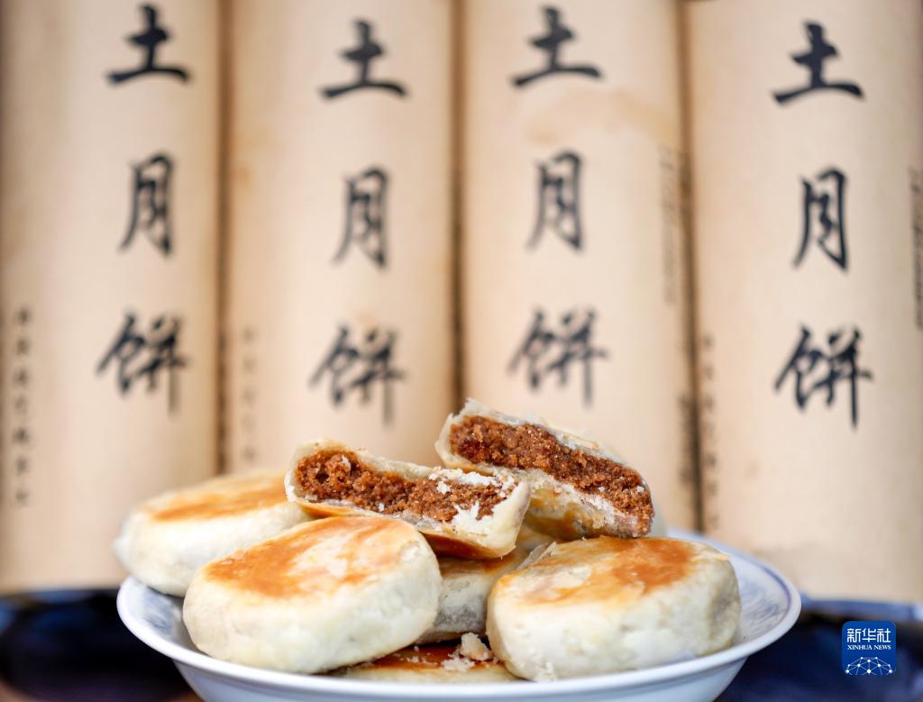 9月19日在安徽省黃山市徽州區澄塘村一家月餅作坊拍攝的火腿土月餅。