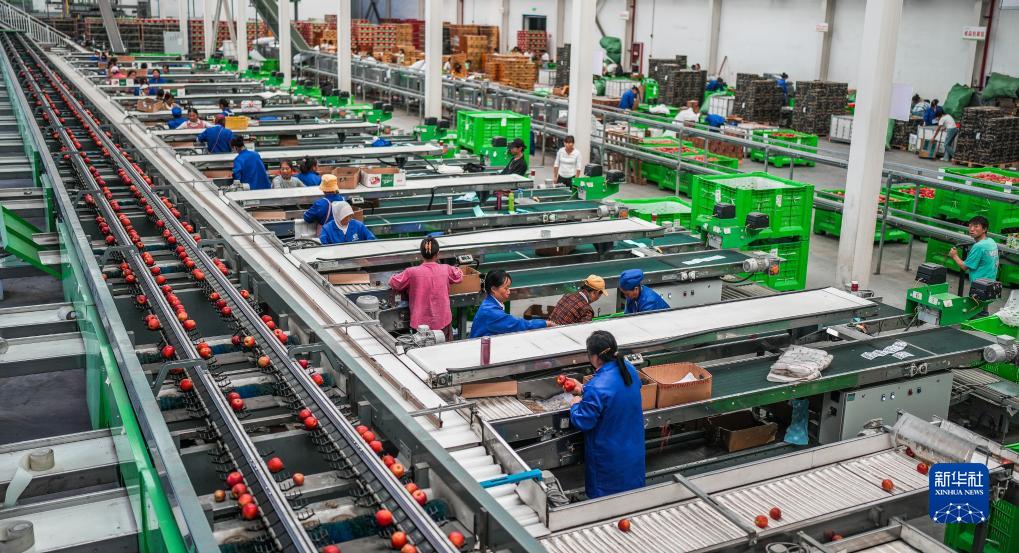 威寧產(chǎn)投生態(tài)果業(yè)的工人在對蘋(píng)果進(jìn)行分揀(9月20日攝)。