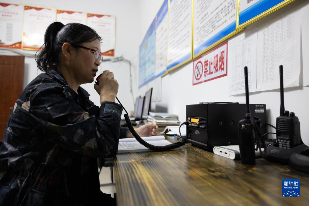 在長(cháng)白山國家級自然保護區管理局頭西保護管理站,電臺員魏長(cháng)娟正在與巡護員聯(lián)系,了解野外巡護情況(9月17日攝)。