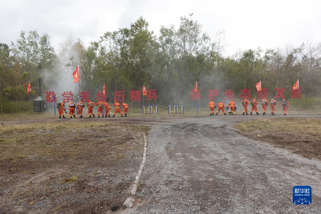 在長(cháng)白山國家級自然保護區王池保護管理站,風(fēng)災區專(zhuān)業(yè)撲火隊正在開(kāi)展森林火災應急處置、撲救技戰術(shù)、緊急避險等方面的訓練(9月17日攝)。
