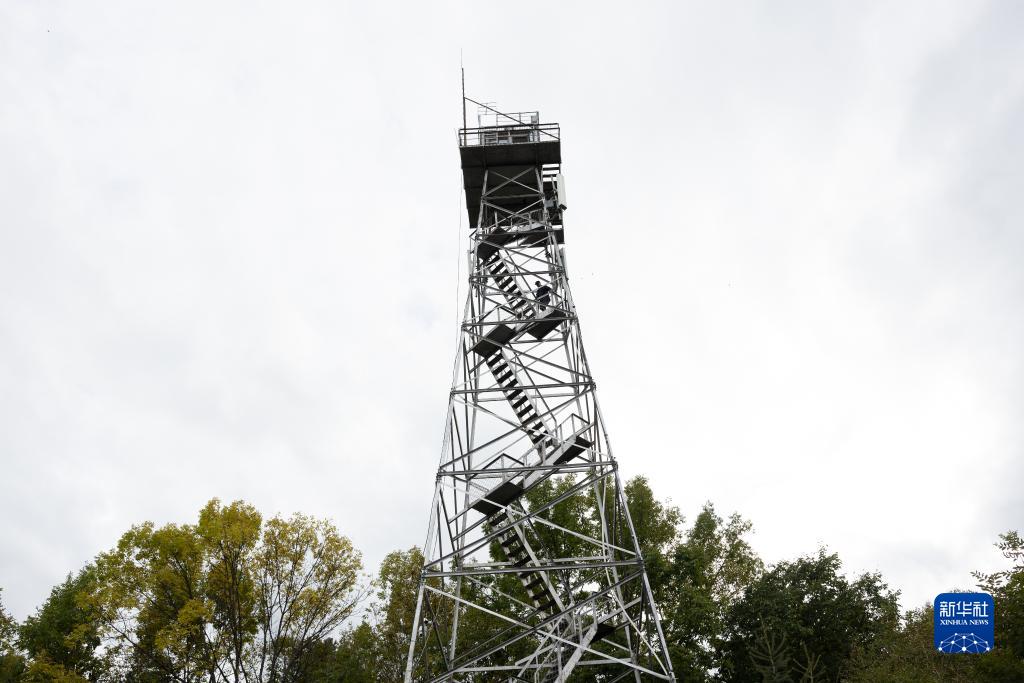 長(cháng)白山國家級自然保護區,瞭望員王孝華在瞭望臺上值守(9月16日攝)。進(jìn)入森林防火期后,他天一亮就登上瞭望臺觀(guān)測,直至天黑才下臺休息。